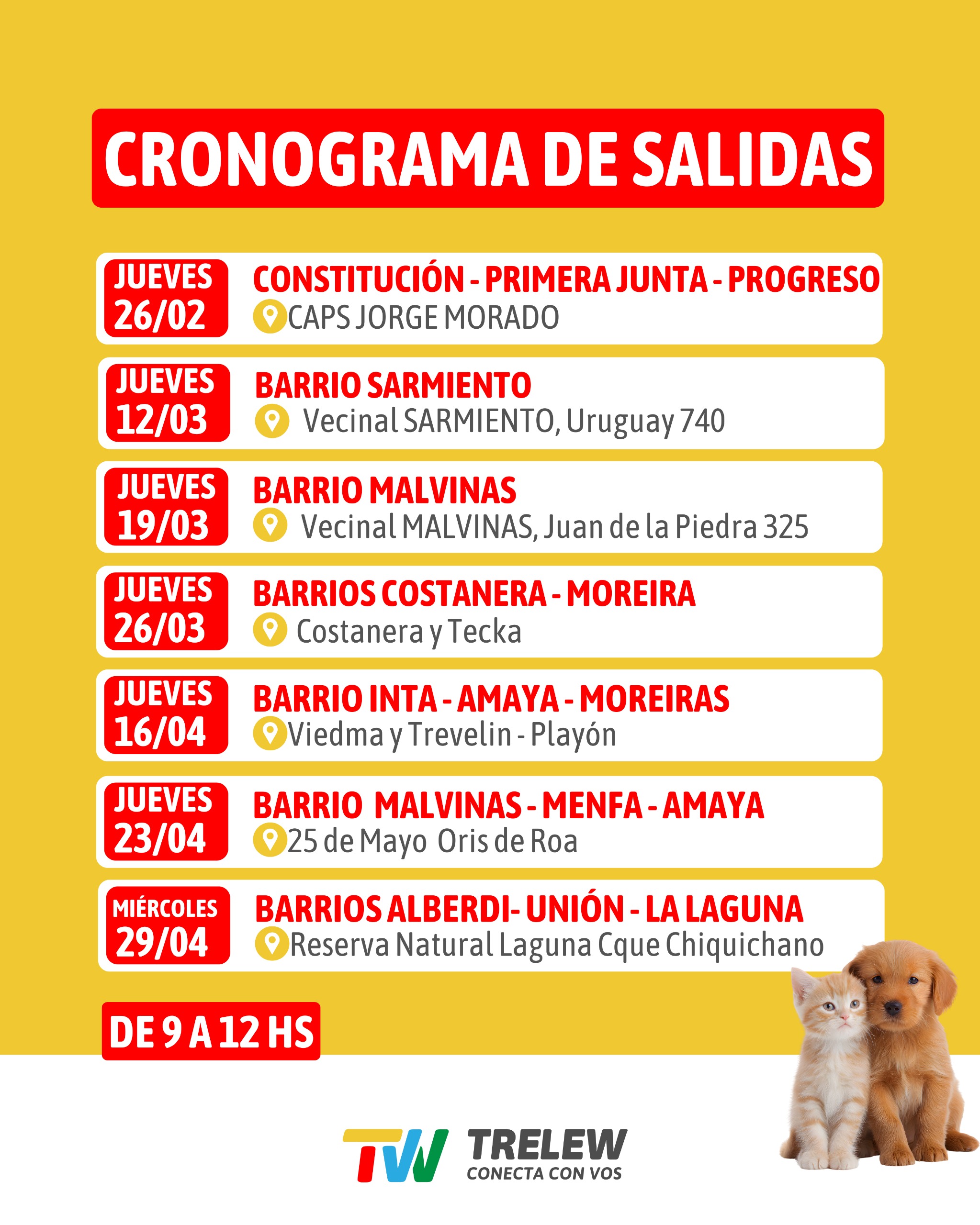 Como parte de un trabajo de prevención, evitar la sobrepoblación de perros y gatos y promover la tenencia responsable, el área de Zoonosis de la Municipalidad de Trelew continúa con las salidas del quirófano móvil. Las castraciones son gratuitas y las intervenciones se realizarán en los barrios.