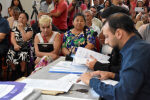 El acto se realizó en el Salón Histórico Municipal con la participación de la presidenta del Concejo Deliberante, Claudia Solís; el secretario de Planificación y Desarrollo Urbano, Julián Montes; funcionarios municipales; concejales; la presidenta del barrio Moreira, Marcela Rechimont; además de vecinos del sector.