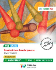La Municipalidad de Trelew invita a la inauguración de las muestras de febrero en el Museo Municipal de Artes Visuales (MMAV), ubicado en Mitre 351, que se realizará el viernes 6 de febrero a las 20, con la apertura simultánea de exposiciones en sus cuatro salas.