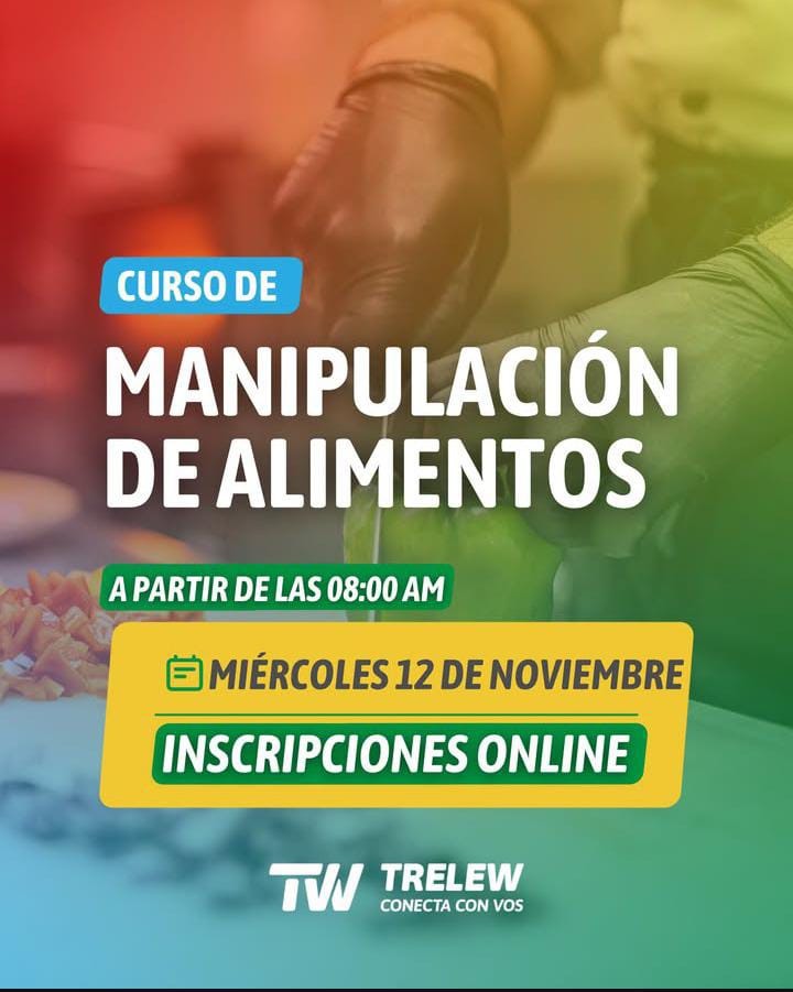 La Municipalidad de Trelew, a través del área de Bromatología, informa que este miércoles 12 de noviembre, a partir de las 8, se abrirá la inscripción online para el nuevo curso de manipulación de alimentos.