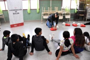 La Municipalidad de Trelew, a través de la Coordinación de Salud, brindó una jornada de capacitación en técnicas básicas de Reanimación Cardiopulmonar (RCP) a estudiantes de la Escuela N.º 216 del barrio INTA.