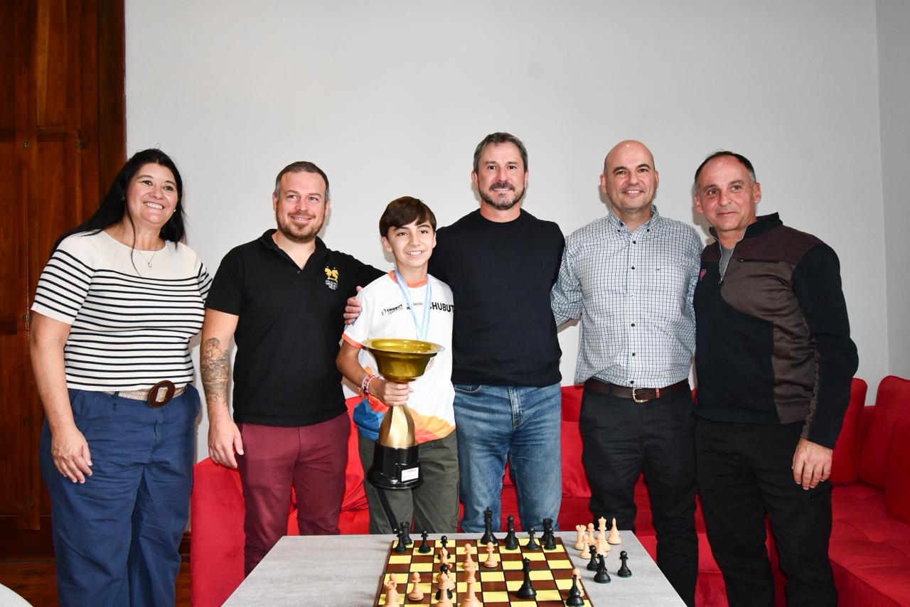 El intendente de Trelew, Gerardo Merino, recibió este martes en el Salón Histórico a Alfonso Uzcudún, quien recientemente se consagró campeón argentino de ajedrez en la categoría Sub-12.