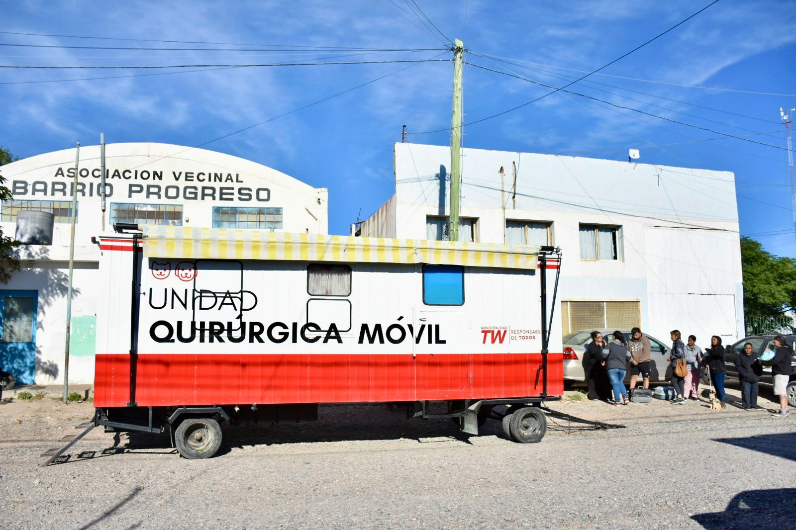 El quirófano móvil del Municipio de Trelew estuvo este jueves en la vecinal de barrio Progreso, alcanzando también a vecinos de Primera Junta y Democracia, en el marco del cronograma de castraciones gratuitas que comenzó a principios de este mes.