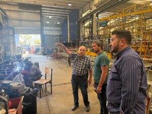 El intendente de Trelew, Gerardo Merino, junto al gerente de la firma El 22, Ariel Jones, visitó la fábrica Italbus, donde se realiza el carrozado de las unidades que llegarán a la ciudad, en el marco del proceso de renovación de la flota de transporte urbano.