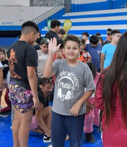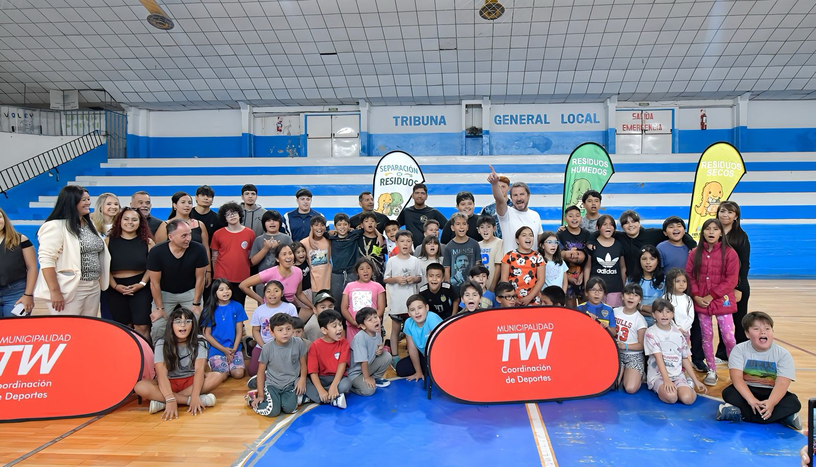 El inicio oficial de las Colonias de Vacaciones se realizó en el Gimnasio Municipal N.º 1, con la presencia del intendente Gerardo Merino, quien estuvo acompañado por la secretaria de Bienestar Integral, Mariana Medina, el coordinador de Deportes, Gustavo Underwood, y otras autoridades municipales.